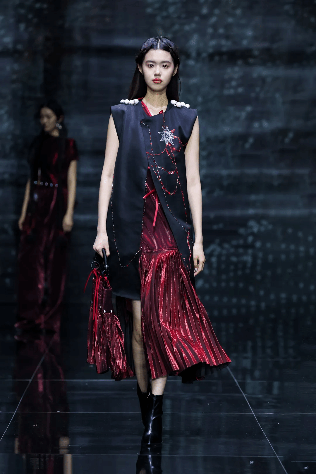 美术学院党委书记韩宇则表示,服装与服饰设计系毕业作品发布会聚焦铸牢中华民族共同体意识主线,全方位展现了美院学子立足国际化设计视角、怀揣多元设计创意,扎实推进非遗活化利用、文化创新表达等方面的突破性实践。他寄语毕业生,作为新时代设计师,希望你们始终心怀“国之大者”,以建设社会主义文化强国的使命感深耕民族艺术沃土,用现代设计语言激活千年文明基因,在坚守中突破,在融合中创造。前路漫漫,愿你们永远做文化薪火的传递者、时代潮流的引领者!